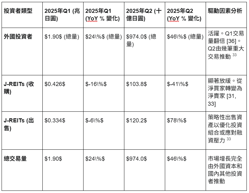 CBRE的數據清晰地表明,截至2025年第二季度,J-REITs整體已轉變為「淨賣家」 (Net Sellers),其資產出售額超過了收購額。
