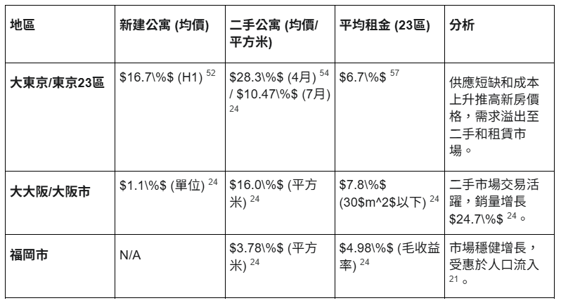 3.1.2. 二手公寓市場:交易活躍與區域差異 (東京, 大阪, 福岡)