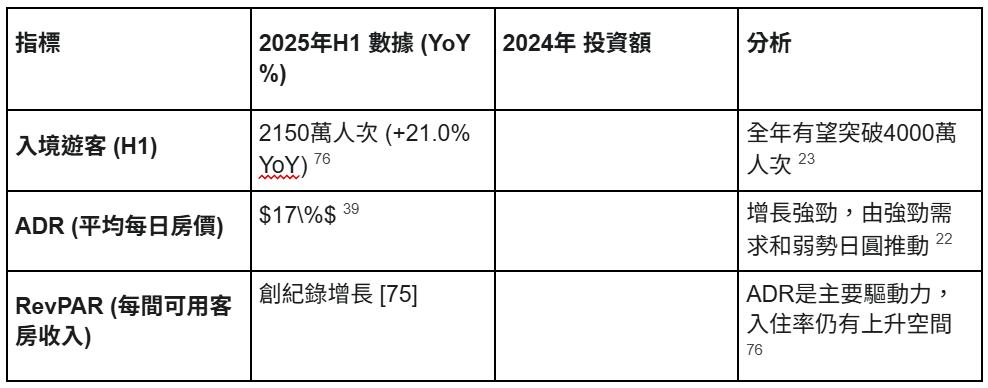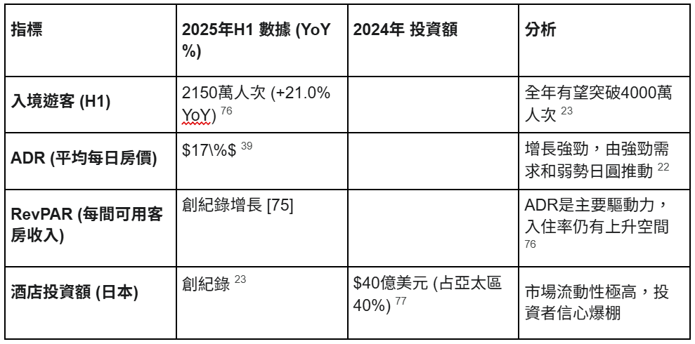 ADR (平均每日房價): 2025年上半年,日本酒店的ADR同比飆升了 17%。