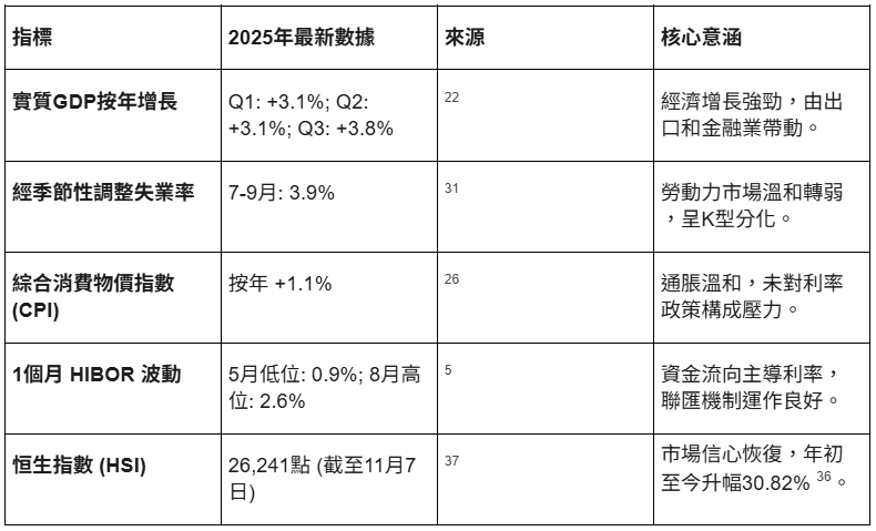 表1:2025年香港關鍵宏觀經濟指標