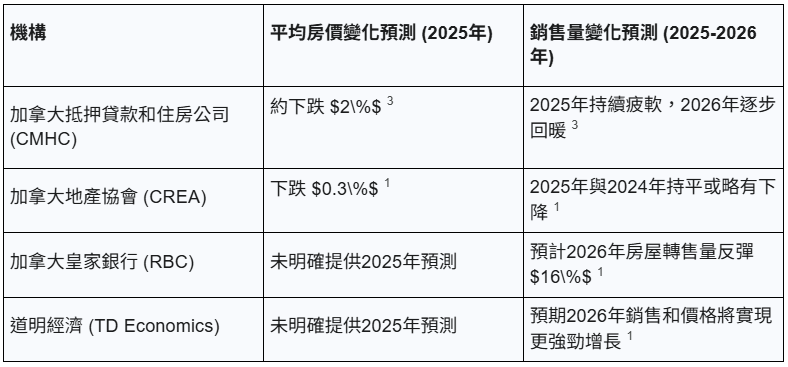 表1:2025年加拿大全國房地產市場關鍵指標預測