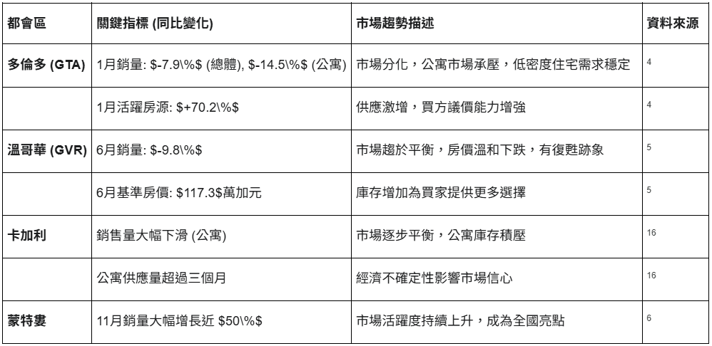 加拿大各大主要房地產市場正在上演截然不同的故事,顯示出日益加深的分化趨勢。